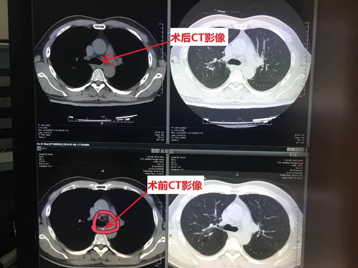 ??? 1月8日晚,家住市區(qū)的徐先生在家中吃晚飯,餐桌上談笑風(fēng)生間,不慎誤吞下一根魚刺。當(dāng)時他努力硬吞后,沒有太大的不適,就沒太在意,出門跳舞鍛煉去了。晚間22時左右,徐先生感覺胸部出現(xiàn)疼痛,而且胸口像針扎一樣越來越痛,急忙來到我院急診科就診。經(jīng)CT檢查發(fā)現(xiàn):食管中段異物伴穿孔。魚刺橫穿食道,其頭端緊緊貼著胸主動脈。