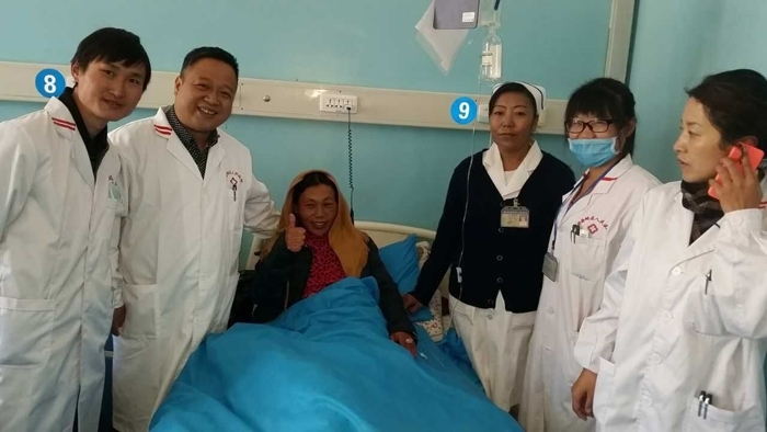 姜方正醫(yī)生(左二)看望剛剛完成手術的藏民