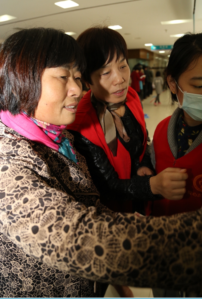 ??? 11月21日、22日,在我院門診大廳,有一群身著紅色馬甲,掛著胸牌的志愿者們?yōu)榛颊咛峁椭?/DIV>