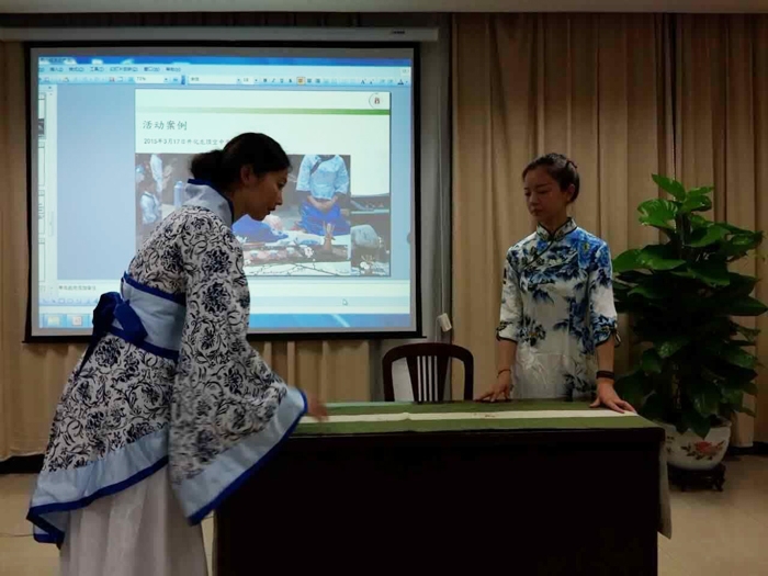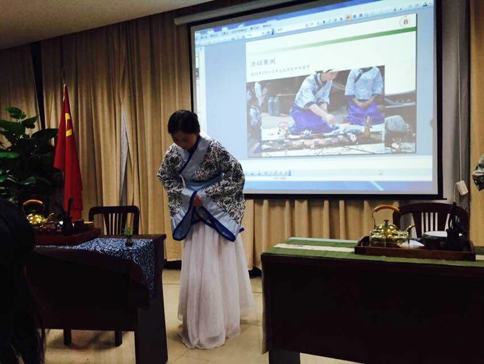 ??? “茶藝,讓品茶由物質(zhì)層面上升到精神層面,包括選茶、擇水、配具、沖泡、品飲、感悟幾部分?!?汪秀芳老師還親自指導(dǎo)了茶藝表演。