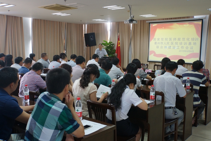 ??? 9月8日上午,國家住院醫(yī)師規(guī)范化培訓(xùn)衢州市人民醫(yī)院培訓(xùn)基地聯(lián)合體建設(shè)工作第一次會(huì)議在我院十二樓會(huì)議室召開。市衛(wèi)計(jì)委黨委副書記楊云貴、黃春芳處長、陳震宏院長、周見副書記等領(lǐng)導(dǎo)出席了會(huì)議,主體基地衢州市人民醫(yī)院以及協(xié)同基地醫(yī)院衢州市第三醫(yī)院、浙江衢化醫(yī)院、江山市人民醫(yī)院、龍游縣人民醫(yī)院、開化縣人民醫(yī)院、常山縣人民醫(yī)院院長、分管副院長、職能部門負(fù)責(zé)人及規(guī)培管理人員參加了會(huì)議。會(huì)議由周見副書記主持。
