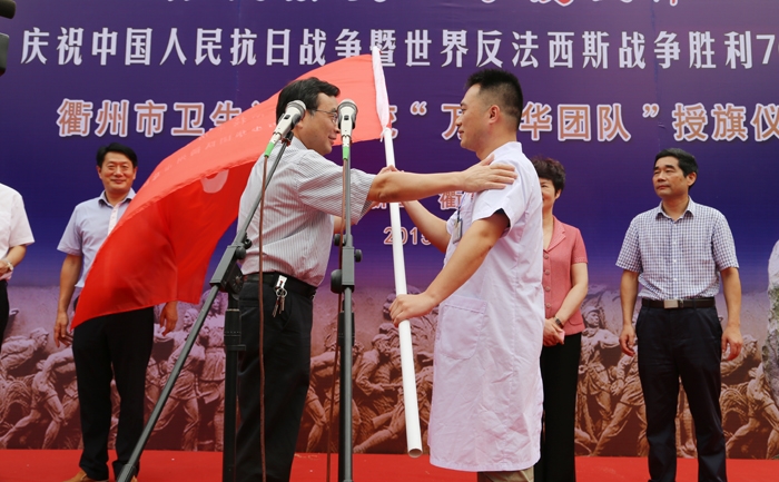 今年是中國人民抗日戰(zhàn)爭暨世界反法西斯戰(zhàn)爭勝利70周年,為了銘記歷史,大力弘揚“救死扶傷、關(guān)愛生命、無私奉獻(xiàn)”的衛(wèi)生計生職業(yè)精神,8月28日上午,衢州市衛(wèi)生計生委在市區(qū)羅漢井細(xì)菌戰(zhàn)衢州展覽館前廣場舉辦“萬少華團隊”授旗儀式。省衛(wèi)生計生委巡視員葉真,宣傳處處長徐兆禮,市委常委、宣傳部長諸葛慧艷,市衛(wèi)生計生委主任陳根成等出席活動。副市長陳錦標(biāo)主持授旗儀式,全市150余名醫(yī)護人員參加儀式。