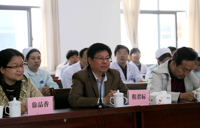 ?? ??? 程君標(biāo)致歡迎詞,對衢州市人民醫(yī)院開化分院掛牌成立表示祝賀。