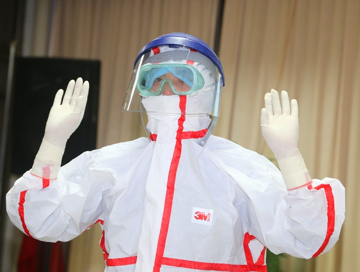 ??? 感染科盧偉力副主任就如何正確佩戴N95口罩及防護(hù)手套、正確穿脫連體防護(hù)服等做了詳細(xì)的講解和示范。通過本次培訓(xùn),提高了醫(yī)護(hù)人員的病例識(shí)別能力與個(gè)人防護(hù)能力,增強(qiáng)了大家的防范意識(shí)。