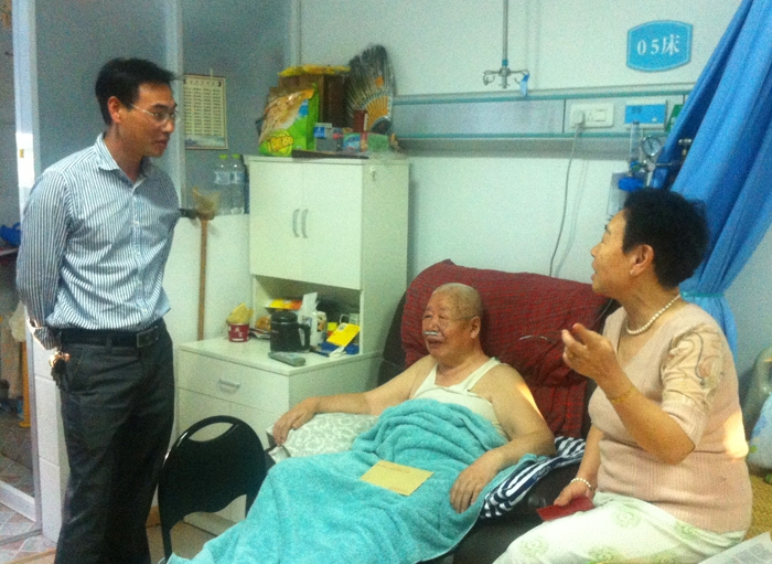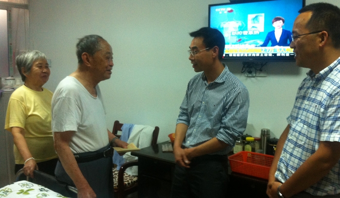 ??? 10月9日下午,我院黨委書(shū)記徐天才攜紀(jì)委監(jiān)察室主任徐哲鋒、人事處處長(zhǎng)陳俊,走訪慰問(wèn)了我院離休干部,向他們送上祝福,祝他們身體健康。