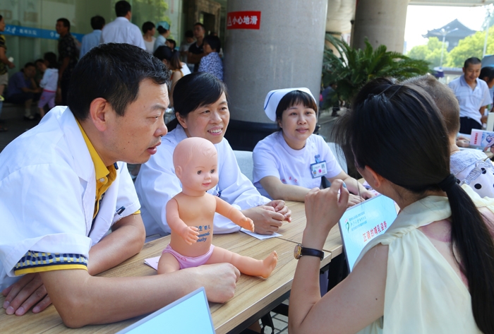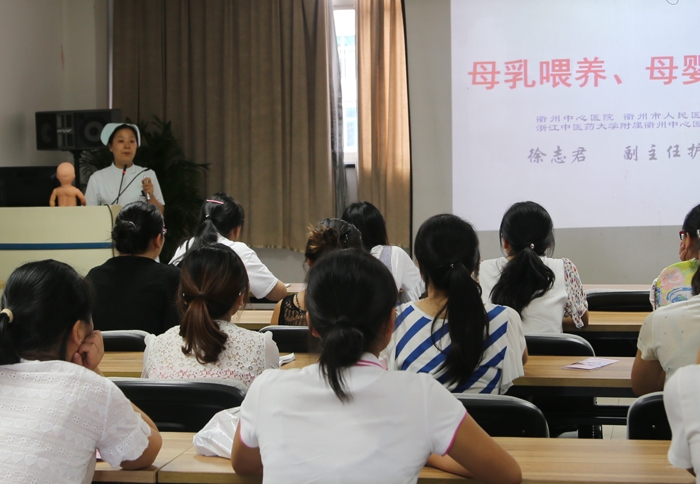 ??? 8月1日上午,我院在門診大樓前舉行了義診活動,產科、兒科的專家們?yōu)槭忻窬湍溉槲桂B(yǎng)問題答疑解惑,發(fā)放健康教育宣傳冊100余份。下午在門診5樓示教室舉辦“孕婦學?!?,專業(yè)人士為準媽媽們講解“母乳喂養(yǎng) 母嬰健康”的相關知識,向孕產婦及其家屬宣傳母乳喂養(yǎng)的好處和技巧,受到了廣泛的好評。