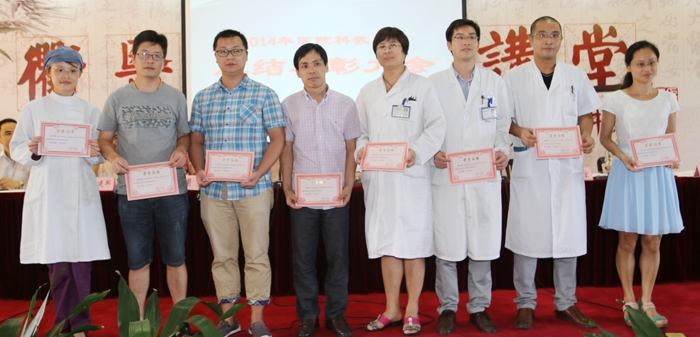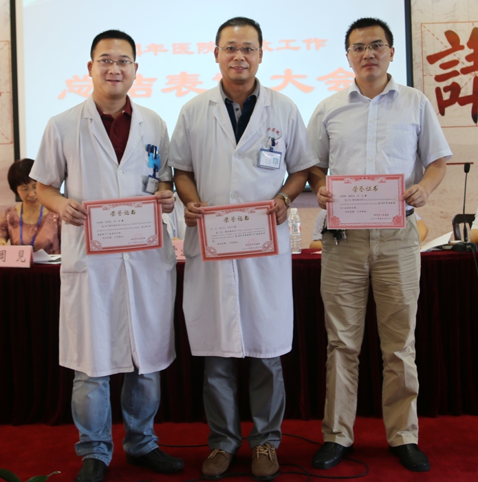 ??? 7月29日下午,我院2014年科教工作總結(jié)表彰大會(huì)在五樓學(xué)術(shù)報(bào)告廳召開(kāi),對(duì)在醫(yī)院科教工作中做出突出成績(jī)的醫(yī)務(wù)人員進(jìn)行了表彰。黨委副書(shū)記、紀(jì)委書(shū)記吳善水宣讀表彰文件,院領(lǐng)導(dǎo)為科、教、研獲獎(jiǎng)個(gè)人和集體頒發(fā)了榮譽(yù)證書(shū)。院領(lǐng)導(dǎo)班子、班組長(zhǎng)以上干部、三級(jí)醫(yī)師、護(hù)理責(zé)任組長(zhǎng)等200余人參加了會(huì)議。