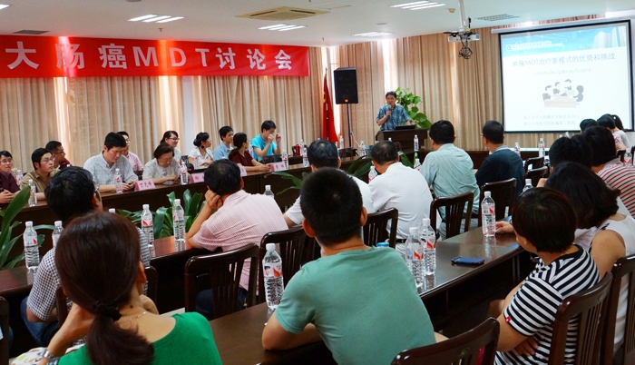 ??? 會上,陳院長對浙二醫(yī)院腫瘤中心MDT團隊的到來表示了熱烈歡迎。張?zhí)K展教授介紹了浙二醫(yī)院直腸癌MDT團隊建設的過程,袁瑛教授作2014ASCO直腸癌亮點的專題講座。隨后,浙二醫(yī)院和我院共提供了5份病例,我院腫瘤外科、腫瘤內科、放療科、肝膽外科、病理科、放射影像科等多科的代表針對患者均發(fā)表了各自的看法。經(jīng)過熱烈的討論后,浙二醫(yī)院腫瘤中心MDT團隊的專家進行了總結,為患者制定了規(guī)范化、綜合化、個體化的診療方案。