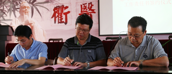 院長陳震宏、黨委書記徐天才與內(nèi)科片主任田明慶簽訂責(zé)任書