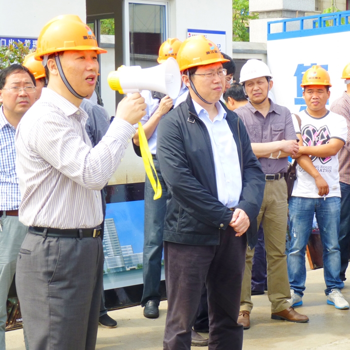 ??? 5月15日上午,副市長(zhǎng)胡仲明攜各縣(市、區(qū))分管負(fù)責(zé)人、市有關(guān)部門負(fù)責(zé)人和企業(yè)負(fù)責(zé)人,到市中心醫(yī)院項(xiàng)目工地現(xiàn)場(chǎng)檢查建筑揚(yáng)塵治理工作。