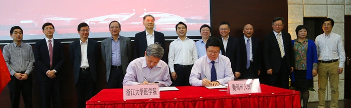 副市長馬梅芝(圖右)與浙江大學(xué)黨委副書記鄒曉東簽訂《浙江大學(xué)與衢州市人民政府醫(yī)學(xué)戰(zhàn)略合作協(xié)議》