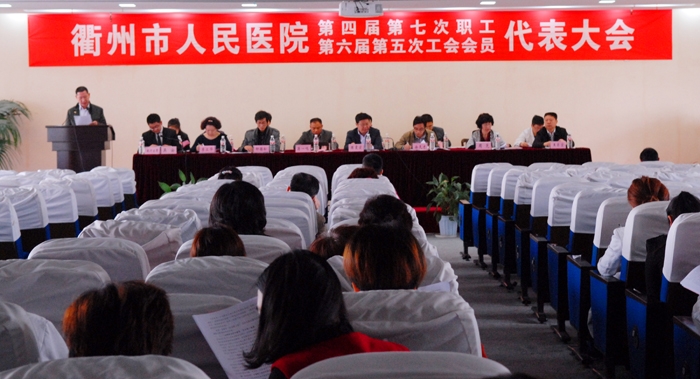 ????4月13日,我院第四屆第七次職工代表大會(huì)暨第六屆第五次工會(huì)會(huì)員代表大會(huì)在學(xué)術(shù)報(bào)告廳隆重舉行。陳震宏院長作了《醫(yī)院工作報(bào)告》,徐天才書記作了《衢州市人民醫(yī)院職工獎(jiǎng)懲辦法》(第三次修訂)的報(bào)告,醫(yī)院工會(huì)副主席柳錫松作了《醫(yī)院工會(huì)工作報(bào)告》,王巨宏副院長作了《醫(yī)院財(cái)務(wù)工作報(bào)告》,經(jīng)審委主任沈紅作了《醫(yī)院工會(huì)經(jīng)費(fèi)審查工作報(bào)告》,工會(huì)委員胡澤富作了《提案工作報(bào)告》。