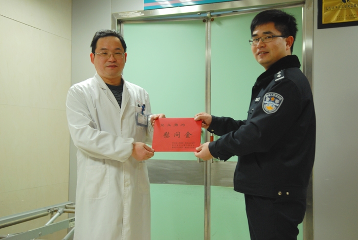 ??? 在偷搶事件面前,你是轉(zhuǎn)身離開?還是圍觀者?又或者會(huì)出手相助呢?今日上午,受浙江省見義勇為基金會(huì)委托,衢州市公安局派人趕赴我院,看望慰問(wèn)麻醉科余功敏醫(yī)師,代表浙江省人民政府和浙江省公安廳對(duì)他勇斗歹徒的義舉進(jìn)行表彰,并頒發(fā)了見義勇為獎(jiǎng)金3000元。