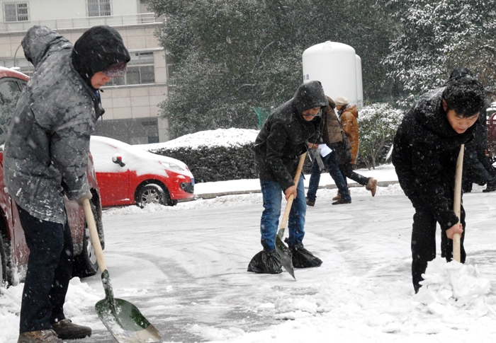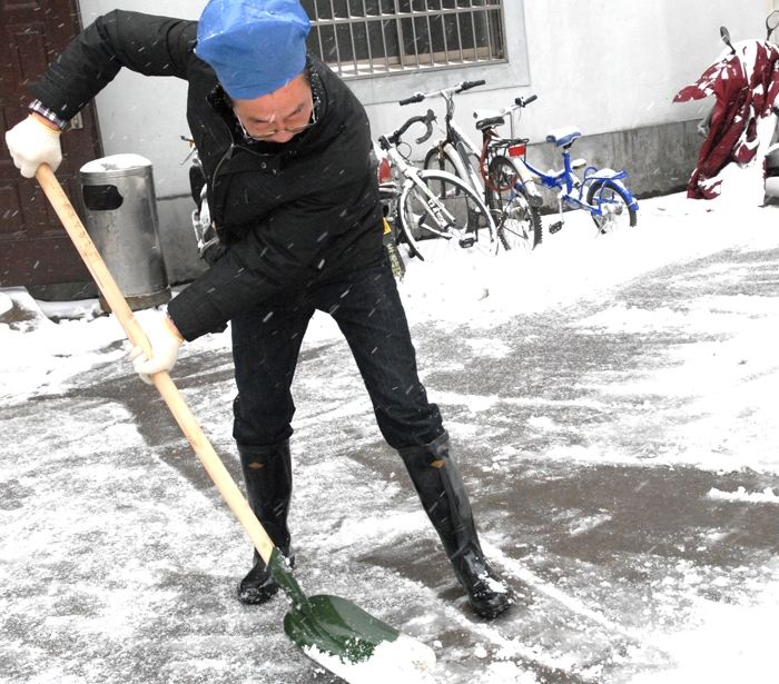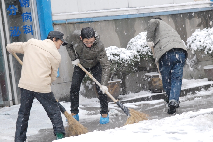 ??? 因天氣原因,地上積雪很厚,給患者就醫(yī)和職工出行帶來諸多不便。1月4日下午,我院總務(wù)處、保衛(wèi)處、維修中心組等部門的職工不畏嚴(yán)寒,自發(fā)清掃地上的積雪,為大家?guī)肀憷?/DIV>