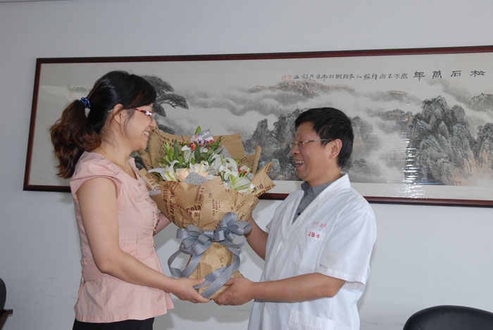 ??? 9月10日,衢州市“浙江省急救適宜技術(shù)示范基地”建設(shè)工作會(huì)議在市人民醫(yī)院召開。來自柯城區(qū)航埠中心衛(wèi)生院的鄭銀環(huán)醫(yī)師將一束鮮花獻(xiàn)給了市人民醫(yī)院急診科戴凌云主任,感謝他多年來將實(shí)用的急救適宜技術(shù)毫無保留的傳授給各基層醫(yī)院醫(yī)生,為當(dāng)?shù)嘏囵B(yǎng)了一支急救隊(duì)伍,使當(dāng)?shù)蒯t(yī)院及百姓受益。