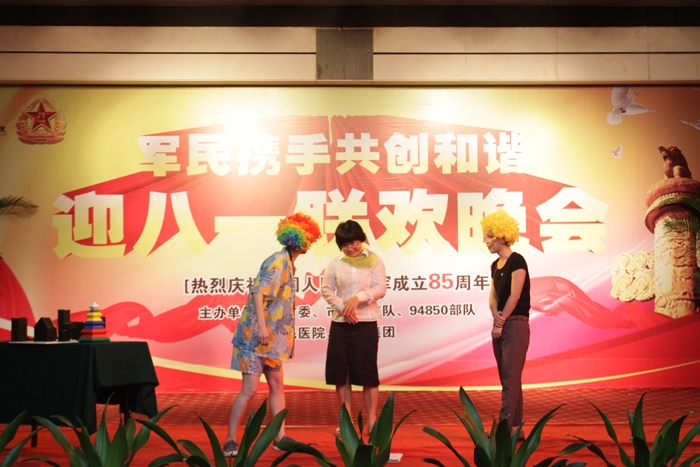 ??? 當(dāng)晚在衢州市東方大酒店舉行的軍民共建單位“迎八一聯(lián)歡晚會(huì)”上,我院肝膽外科選送的小品“落葉歸根”贏得了現(xiàn)場(chǎng)觀眾陣陣掌聲。