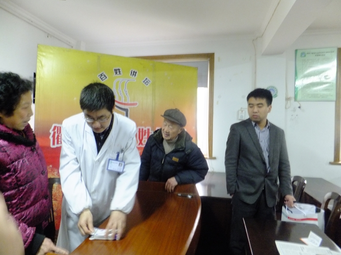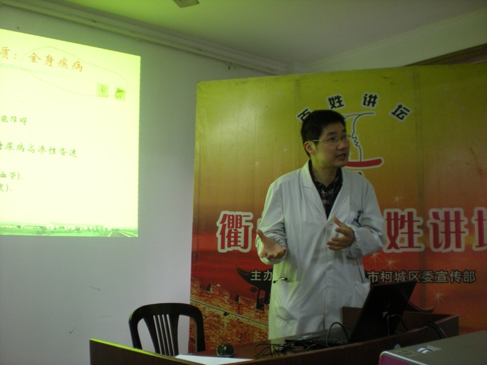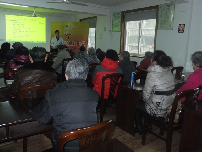 ??? 當日上午9時,在松園社區(qū)居委會會議室,三四十名社區(qū)的糖尿病患者和家屬仔細聆聽了胡朝暉主任的講課。其中年齡最大的有八十幾歲。由于該社區(qū)居民大多為老城區(qū)的拆遷戶,彼此之間交流用的都是衢州本地話。胡朝暉主任便用通俗易懂、地道的衢州方言講解了糖尿病的危害、預防的重要性及綜合治療方法,深受居民爺爺、奶奶輩們的歡迎。他們說:“在社區(qū)能聽到這些知識真好!我們平時對自己關注的太少了”。當一位患者問及藥物知識時,胡主任讓她回家取了藥盒,沒想到她之前的服用方法竟然是錯誤的,這位阿姨連連道謝,她說:“如果你們不來,我還想不到把藥盒拿出來問問,這不,錯用藥物方法快一個月了?!?/DIV>
