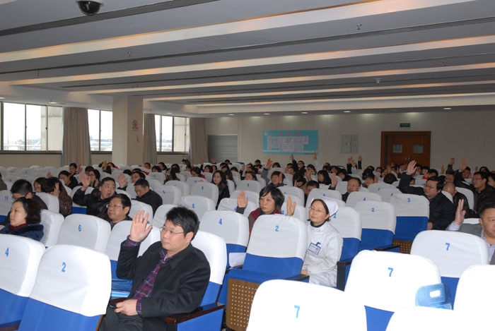 ??? 2月24、25日,我院第四屆第四次職工代表大會暨第六屆第四次工會會員代表大會在學(xué)術(shù)報告廳隆重舉行。院長徐周佳、黨委書記徐天才、黨委副書記、工會主席蔣一鳴,副院長毛力非、吳善水、周見及主席團(tuán)成員在主席臺就坐。徐周佳院長作了《醫(yī)院工作報告》,徐天才書記作了《關(guān)于創(chuàng)建全國文明單位工作規(guī)劃》的報告,醫(yī)院工會副主席柳錫松作了《醫(yī)院工會工作報告》,副院長毛力非作了《醫(yī)院財務(wù)工作報告》,經(jīng)審委主任沈紅作了《醫(yī)院工會經(jīng)費(fèi)審查工作報告》,工會委員胡澤富作了《提案工作報告》。