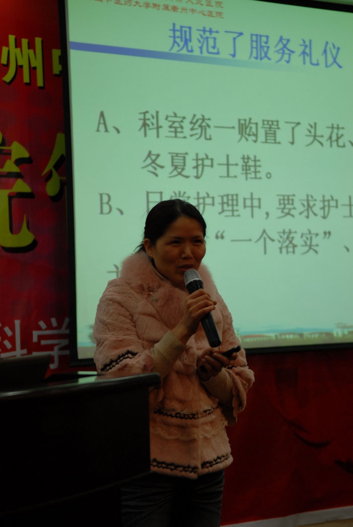 本次講壇,10名來自護理崗位的護士登臺與在座的300余聽眾分享了各自科室開展優(yōu)質護理活動的經驗、心得、成果,就開展優(yōu)質護理過程中遇到的困惑進行了交流。與會的護士表示將再接再勵,提高優(yōu)質護理水平,達到“患者滿意、社會滿意、政府滿意”的目標。
