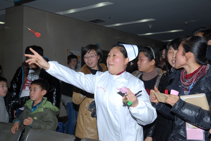釣魚、套圈、踢毽子、飛鏢、瞎子過(guò)障礙等10項(xiàng)趣味性的游戲吸引了近600人參加。游園活動(dòng)使醫(yī)務(wù)人員在緊張的工作之余放松了心情、增進(jìn)了交流。在這里,獲獎(jiǎng)與否已經(jīng)并不重要,參與和笑聲才是最大的收獲。
