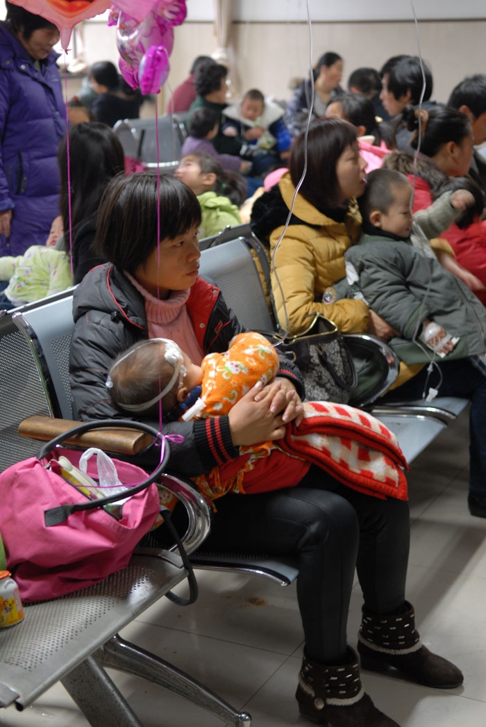 近段時間,受寒冷天氣影響,每天來我院兒科門診就診的患兒達400余號,晚上兒科急診近150號。兒科四個診室全部開診,延遲下班,依然難敵源源不斷的患兒。輸液大廳內孩子扎堆。前來就診的患兒主要是呼吸道感染、感冒、腹瀉等疾病。