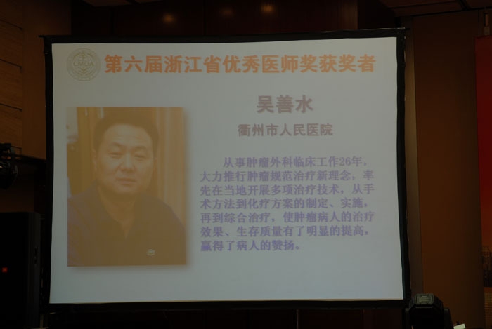 ??? 據(jù)了解,“浙江省優(yōu)秀醫(yī)師獎(jiǎng)”是經(jīng)省衛(wèi)生廳批準(zhǔn),由浙江省醫(yī)師協(xié)會(huì)設(shè)立的全省醫(yī)師行業(yè)的最高獎(jiǎng)項(xiàng)。