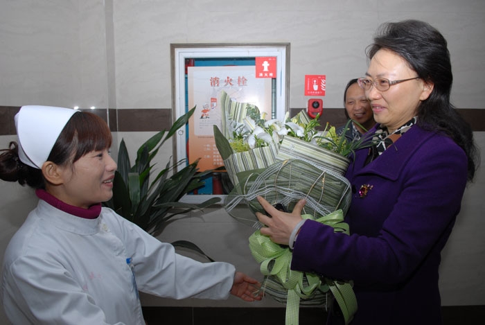 羅副市長給正在崗位上工作的林小娟獻(xiàn)上了鮮花,感謝她為醫(yī)院為市里爭光,成為衛(wèi)生系統(tǒng)學(xué)習(xí)的榜樣,同時也要求林小娟保持一顆平常心,在以后的工作中更加努力,取得更大成績。