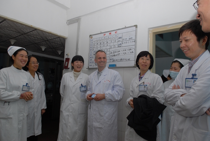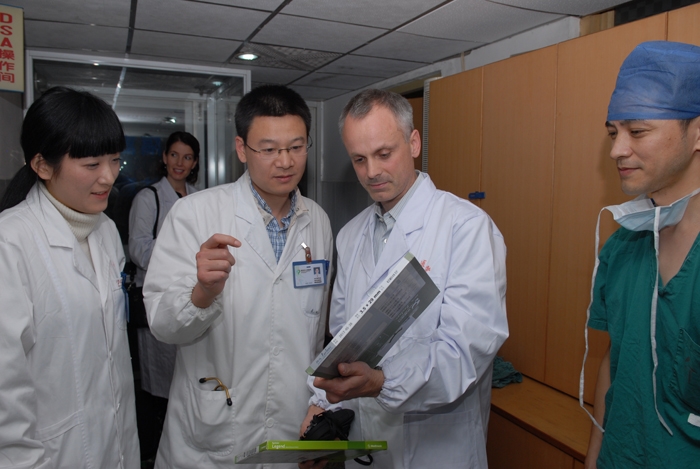 GUDJON KARLSSON 博士是心內(nèi)科專家,此次專程來我院訪問。GUDJON KARLSSON 博士在周見副院長的陪同下參觀了我院。在介入導管室,GUDJON KARLSSON 博士觀摩了我院心內(nèi)科醫(yī)生的介入手術(shù)操作后,與心內(nèi)科醫(yī)生作了交流,他對我院心內(nèi)科開展的介入手術(shù)項目、例數(shù)、醫(yī)生嫻熟的操作技術(shù)豎起了大拇指。心內(nèi)科病房護士整潔的著裝、和患者融洽的關系給GUDJON KARLSSON 博士留下了深刻的印象,主動要求和醫(yī)護人員合影。GUDJON KARLSSON 博士還作了一場精彩的學術(shù)報告,介紹了世界心臟介入手術(shù)的新技術(shù)新進展。我院醫(yī)生在聽了講座后與GUDJON KARLSSON 博士進行了探討。