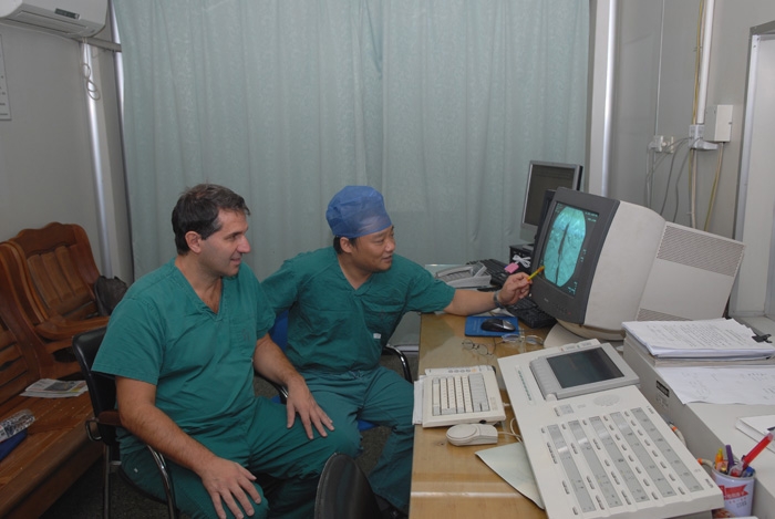 ????18日下午,Salcuni教授參觀了我院后,他對我院的規(guī)模、設(shè)施、技術(shù)力量和快速發(fā)展表示了由衷的贊賞,并愿與我院進(jìn)一步加強交流和合作。隨后作了一場精彩的學(xué)術(shù)報告。19日上午,他現(xiàn)場指導(dǎo)了我院的血管介入手術(shù),還與我院血管外科專家進(jìn)行了廣泛的學(xué)術(shù)交流,使大家獲益匪淺。