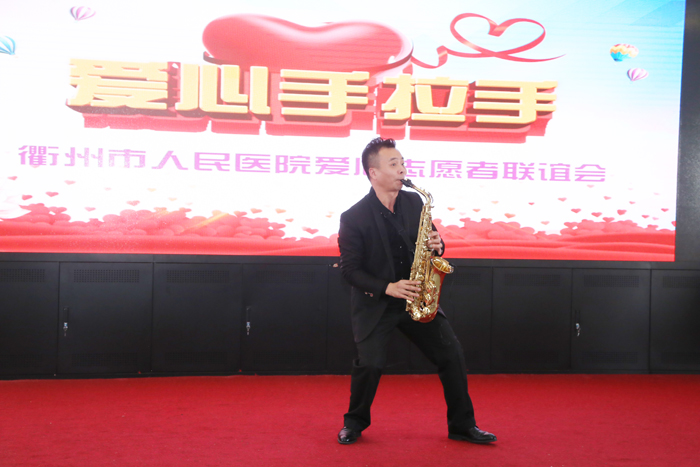 “浙西薩克斯王子”美稱的鄭新華老師應(yīng)邀為志愿者們獻上薩克斯獨奏《歌聲與微笑》
