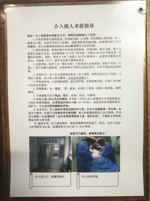 改變以往的紙質(zhì)宣教方式,轉(zhuǎn)變?yōu)槲⑿哦S碼宣教方式,綠色環(huán)保的同時(shí),更能為患者帶來便利。除了日常的疾病健康宣教以外,結(jié)合科室特點(diǎn),我們還自制了介入手術(shù)前、術(shù)后指導(dǎo),懸掛于病房之內(nèi)。