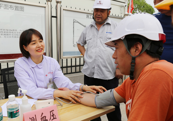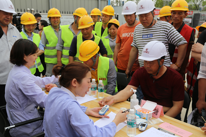 活動中,來自我院健康管理中心的醫(yī)護(hù)人員為工友們進(jìn)行了量血壓、測血糖、內(nèi)科、外科等檢查,耐心解答了工友們提出的問題,并針對性地講解了一線民工們應(yīng)該注意的職業(yè)健康事項。