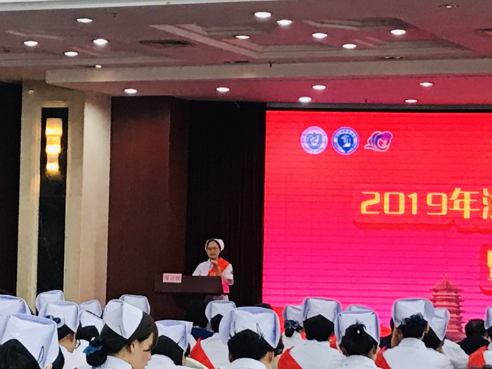林麗紅護(hù)士長作為優(yōu)秀護(hù)士代表發(fā)言