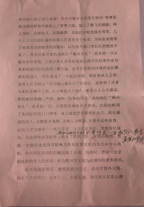 【衢醫(yī)有禮】一封暖暖的感謝信