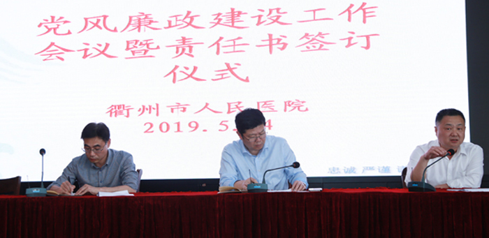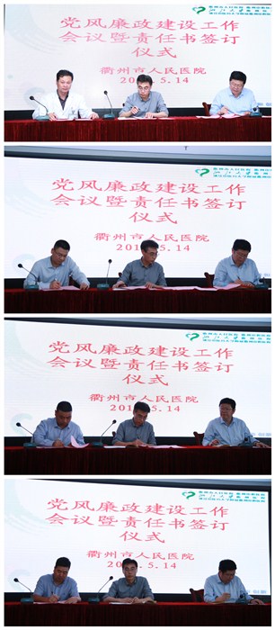 會上,院長陳震宏、院黨委書記徐天才分別與藥學(xué)部、設(shè)備處、信息處、總務(wù)處等部門代表簽訂了《衢州市人民醫(yī)院2019年黨風(fēng)行風(fēng)建設(shè)和廉政反腐工作責(zé)任書》。責(zé)任書堅持“誰主管、誰負(fù)責(zé)”的原則,明確了支部書記、大片主任、部門負(fù)責(zé)人、科主任護(hù)士長為本支部、本片、本部門、本科室的黨風(fēng)行風(fēng)廉政建設(shè)第一責(zé)任人。