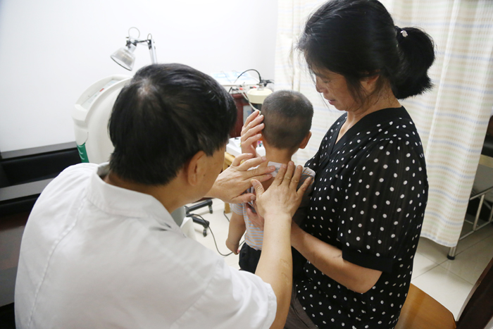 貼敷現(xiàn)場(chǎng),一位可愛(ài)的小男孩引起了小編的注意,小男孩是奶奶帶過(guò)來(lái)貼“三伏貼”的。奶奶表示,自己已經(jīng)貼了三年的“三伏貼”了,效果是顯而易見(jiàn)的。這次特意帶上孫子?!皩O子年齡小,抵抗力低下,貼“三伏貼”增強(qiáng)體質(zhì),提高免疫力!”