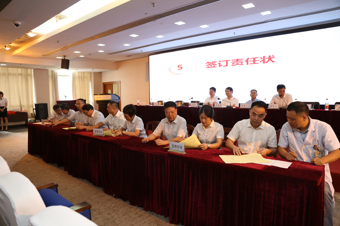 陳震宏院長、徐天才書記代表醫(yī)院和五位“三甲”復評工作組組長簽訂責任狀