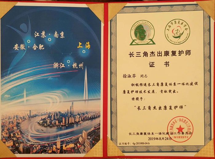 我院康復(fù)醫(yī)學(xué)科護(hù)士長(zhǎng)徐淑芬榮獲長(zhǎng)三角杰出康復(fù)護(hù)師