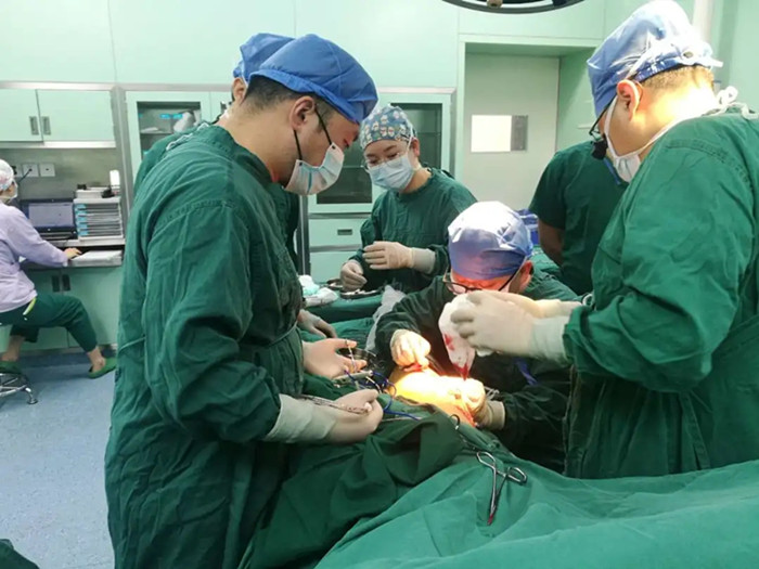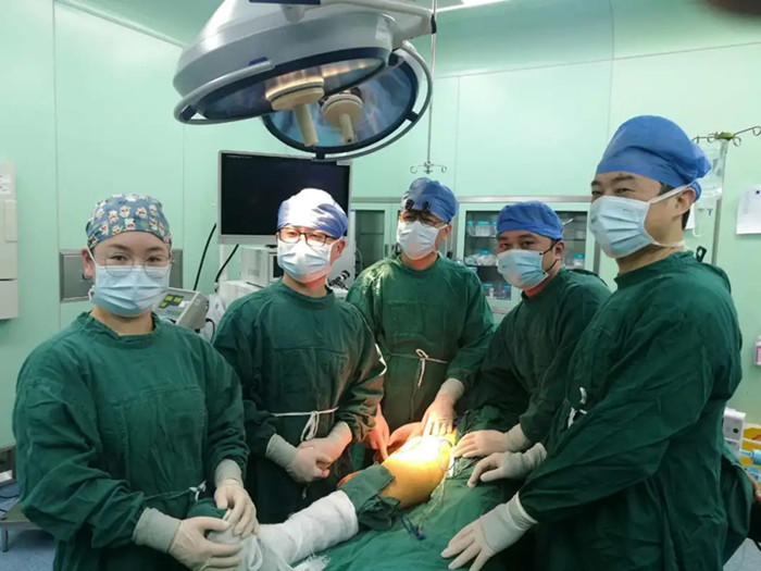 手術(shù)室內(nèi),王健以髂髕線中點(diǎn)為皮瓣旋轉(zhuǎn)點(diǎn),設(shè)計(jì)大小為12*4cm旋股外側(cè)動(dòng)脈降支穿支皮瓣,采用“四面解剖法”切取皮瓣,將切取后血運(yùn)良好的皮瓣順行轉(zhuǎn)移修復(fù)大腿近端創(chuàng)面,間斷縫合,皮瓣供區(qū)直接縫合。在王健主任的帶領(lǐng)下,一個(gè)半小時(shí)后,手術(shù)順利完成。