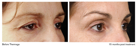 治療后膠原蛋白收縮, 能看到皮膚收緊提升的效果。膠原蛋白新生需要 3 到 6 個月,一般在治療 3 個月后的效果會更明顯。