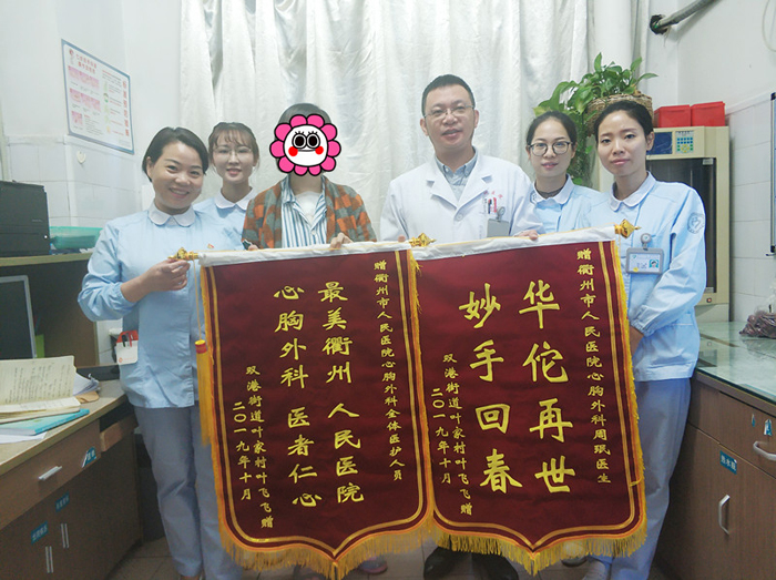 葉女士送上錦旗感謝醫(yī)護(hù)人員的救命之恩
