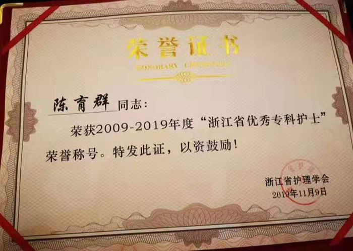 我院內(nèi)分泌代謝病科護士長陳育群榮獲“浙江省優(yōu)秀??谱o士”稱號