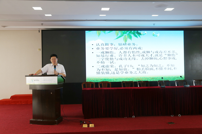 總結(jié)表彰儀式上,黨委委員程科云希望新入職員工迅速轉(zhuǎn)變角色,明確責(zé)任,在今后的工作中,不斷完善自己,做一名德技雙馨的醫(yī)療技術(shù)人員,為醫(yī)院的發(fā)展貢獻(xiàn)自己的力量。
