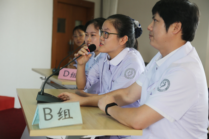 一場(chǎng)精彩的知識(shí)競(jìng)賽拉開(kāi)序幕,學(xué)員代表分為4組參加知識(shí)搶答,搶答題目涉及醫(yī)技、護(hù)理、社保、心理等方面。