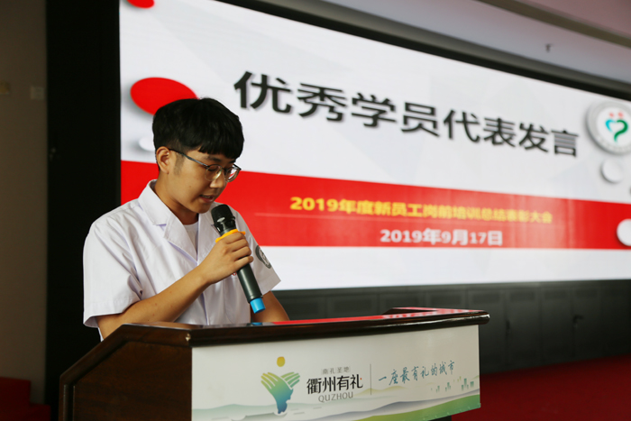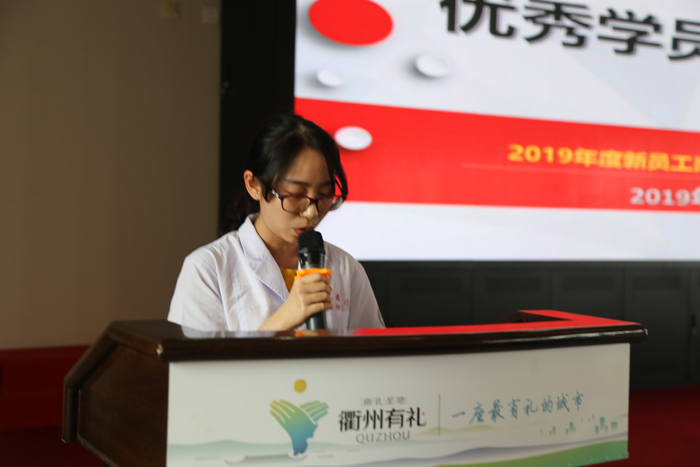 十分榮幸能和在座的每一位學(xué)員一起加入我院這個(gè)大家庭中,老師們精心的準(zhǔn)備,精彩的授課,讓我們受益匪淺。每一位學(xué)員都深深體會(huì)到了衢醫(yī)的精神,衢醫(yī)的文化,使我們了解了“忠誠(chéng),嚴(yán)謹(jǐn),謙和,創(chuàng)新”的院風(fēng),“以人為本,呵護(hù)健康”的使命,以及成為“市內(nèi)龍頭、省內(nèi)一流、邊際中心、全國(guó)百?gòu)?qiáng)”的決心。