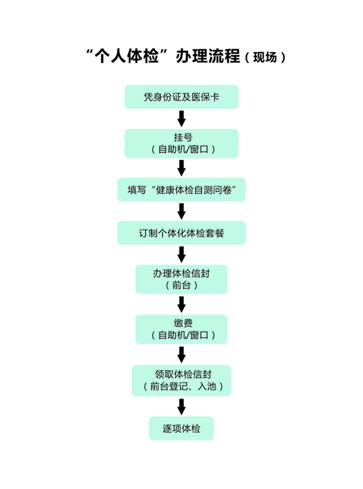 體檢辦理流程 文章來源:健康管理中心 作者: 點(diǎn)擊數(shù):14623 更新時(shí)間:2019-11-15 上一篇: 體檢,到這里!11月8日,四省邊際中心醫(yī)院健康管理中心啟用 下一篇: 2019年體檢套餐 (女)