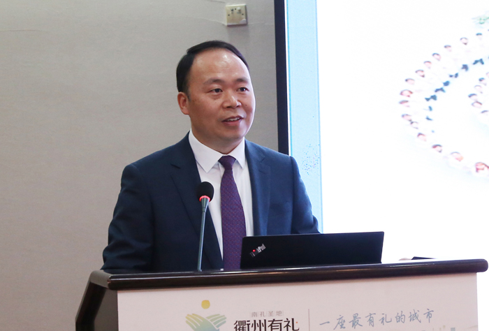 衢州市市政府副市長(zhǎng)王良春致辭,希望各位評(píng)審專家多提寶貴意見(jiàn)和建議,希望衢州市人民醫(yī)院珍惜這次難得的機(jī)會(huì),主動(dòng)學(xué)習(xí)積極整改,辦好人民滿意的醫(yī)院。