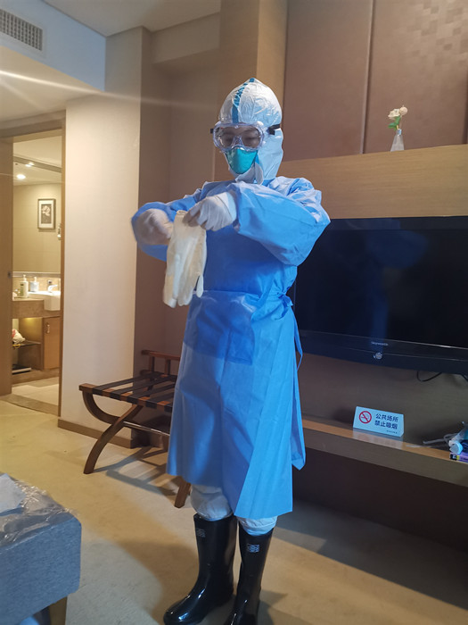 下班前,我們所有人護目鏡上滿是水珠,早已汗流浹背,脫下防護裝備,所有人的臉上都能看到被防護裝備勒出的印記。不怕苦、不怕累,是我們團隊的座右銘。