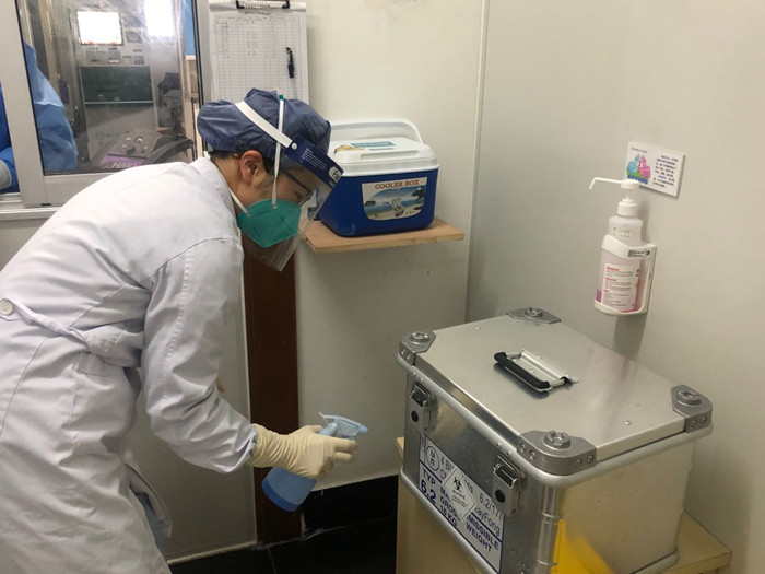 這里有一個由5名醫(yī)生,16名護士,4名檢驗師組成的“戰(zhàn)隊”,他們,是作為首批負壓病房醫(yī)護沖到一線的“白衣戰(zhàn)士”,與患者零距離接觸,每天在隔離病房和隔離宿舍兩點一線忙碌。