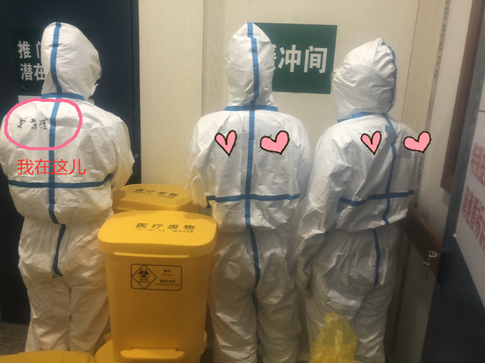 為了彼此區(qū)分,大家都在防護服后面寫上了自己的名字